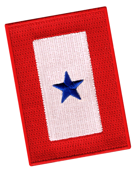 Top quality embroidered patch with iron-on backing. This patch shows the Blue Star Service Banner, flown by families with one member serving in the military.