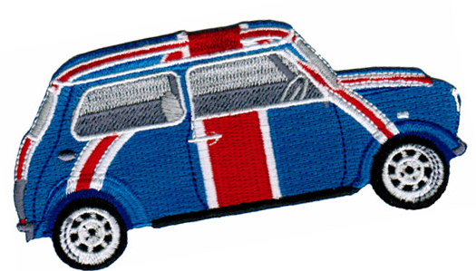The Union Jack is a popular decoration for Mini Cooper autos. Here is an iron-on embroidered patch version.