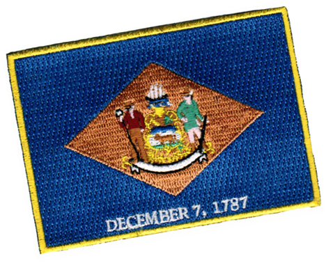 The Delaware state flag patch features a date on it - the date Delaware signed the US Constitution. Turning the Delaware flag into an iron-on patch was not easy. When you are dealing with embroidery this small, it is difficult to capture the detail in the center emblem of this state flag patch. But, we've done it and we humbly suggest that our version of the Delaware flag patch is the best out there.