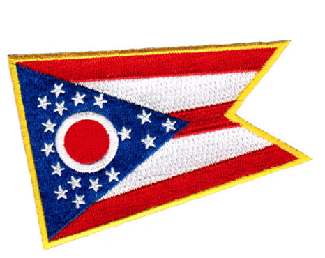 The Ohio state flag is unique because it isn't a rectangle. Although many embroidered iron-on flag patch sellers will create a rectangle patch that merely shows the Ohio flag on it, our Ohio flag patch has heat-cut borders to achieve the actual look of this most memorable flag. This iron-on flag applique is a popular choice among flag patch collectors who insist on accuracy in their flag patches.