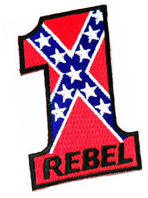 Rebel #1. The venerable biker symbol and Confederate flag is here in iron-on patch form.