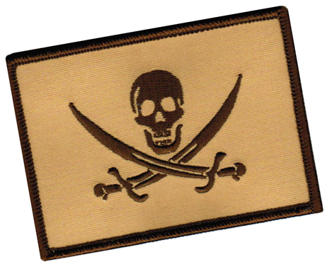 The beautiful and unique looking desert tan version of the Calico Jack pirate flag patch emblem is an absolute must have for those who enjoy pirate memorabilia. Beautifully custom embroidered and carefully stitched, this subdued Calico Jack pirate flag patch applique looks great on clothing, backpacks or even a hat. Made with military camo colors in mind, this is the perfect patch to add to your ruck sack.
